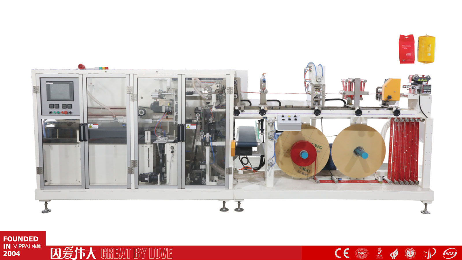 VPD900M智能高速套袋機 根據(jù)市場需求特別硏發(fā)的智能式套袋機,適用于醫(yī)療、化妝品、生活用紙、食品等行業(yè)。設備集套袋、包裝、封合、打碼于一體,綠色環(huán)保。設備適用于衛(wèi)生巾、護墊、寵物墊、棉柔巾、濕巾、尿不濕、手套、口罩、床墊、手術(shù)衣、蛋糕、吐司、面包等多種物品包裝,可根據(jù)客戶的產(chǎn)品要求定制