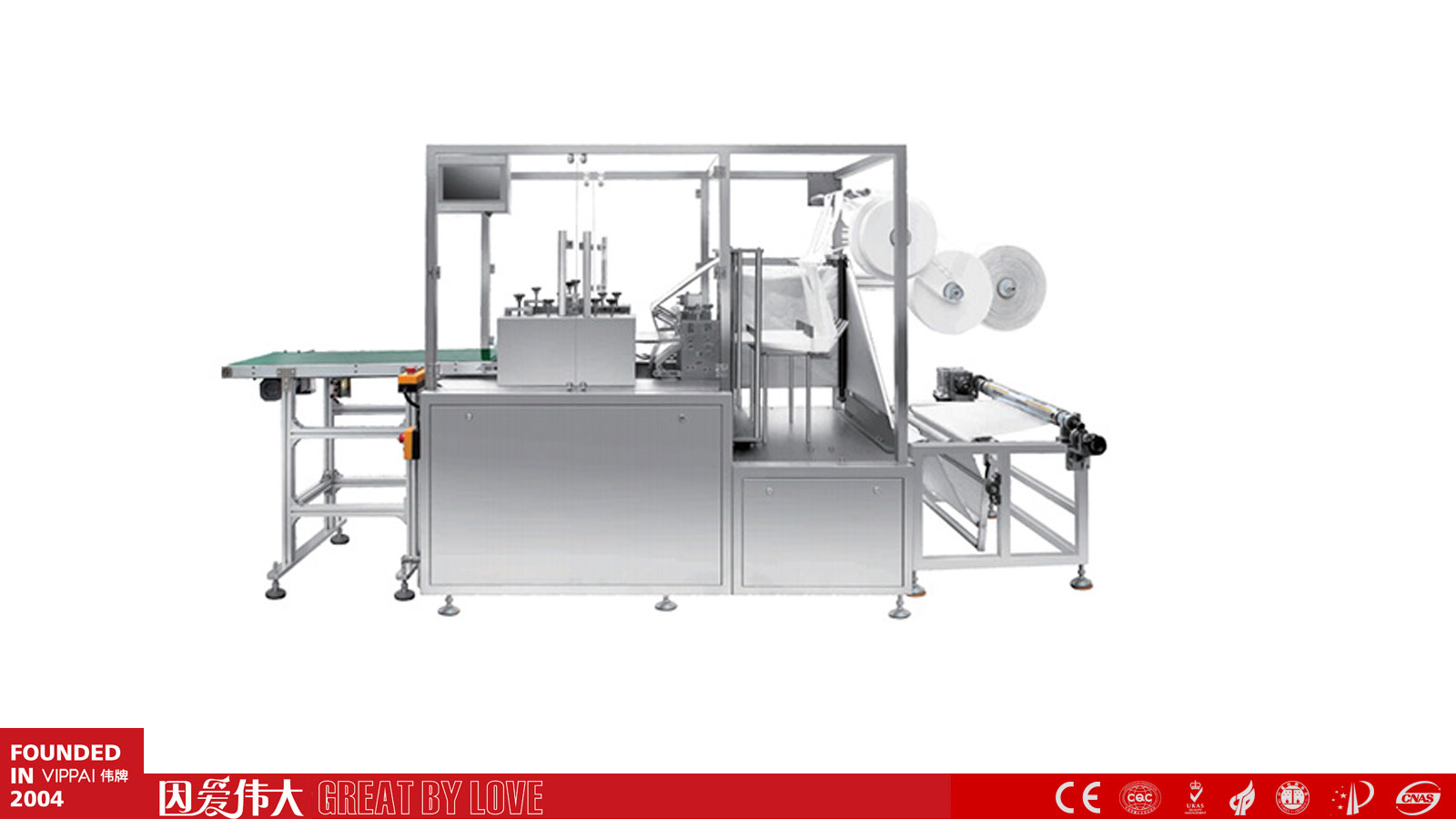 VPD98-III1-3步全自動高速面膜機 該設備可以穩定的處理各種形狀的袋子,即使是異形袋也可以每分鐘穩定生產80-100袋。它具有非常高的靈活性,可以適應面膜包裝的不同需求。