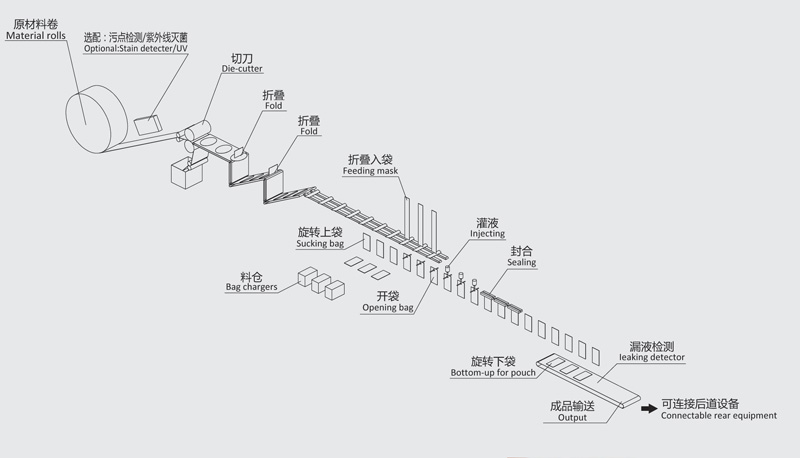 整個包裝過程透明可見,智能監(jiān)控系統(tǒng)確保面膜包裝的最大安全性能和最大效率。